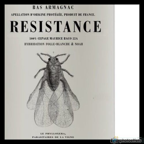 A côté de cette approche plus contemporaine de l’armagnac, Laballe propose une eau-de-vie tout à fait singulière et dont la raison d’être est implicite dans son intitulé et plus explicite sur le motif de son étiquette. « Résistance », c’est son nom, porte ainsi le dessin d’un insecte : le phylloxéra. Audacieuse, la représentation de la cause d’un immense fléau lève ainsi un tabou pour les raisons que l’on ne sait que trop. En même temps, la survie de la vigne est venue à l’évidence de cépages résistants, en l’occurrence le baco. Issu pour partie de folle blanche, variété dédiée aux eaux-de-vie, le baco est un hybride résistant au phylloxéra. « Résistance » est exclusivement issue de vieilles vignes de ce cépage, qui a lui-même failli disparaître alors qu’il insuffle bien des qualités aux bas-armagnacs. Réminiscence d’une époque troublée, cette cuvée a été élaborée d’une manière intègre, à l’instar des autres produits du domaine.